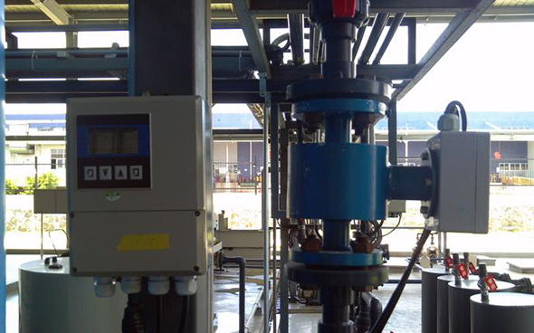 2)可測(cè)量贓污介質(zhì)、腐蝕性介質(zhì)及懸濁性液固兩相流的流量。這是由于儀表測(cè)量管內(nèi)部無(wú)阻礙流動(dòng)部件,與被測(cè)流體接觸的只是測(cè)量管內(nèi)襯和電極,其材料可根據(jù)被測(cè)流體的性質(zhì)來(lái)選擇。例如,用聚三氟乙烯或聚四氟乙烯做內(nèi)襯,可測(cè)量各種酸、堿、鹽等腐蝕性介質(zhì);采用耐磨橡膠做內(nèi)襯,就特別適合于測(cè)量帶有固體顆粒的、磨損較大的礦漿、水泥漿等液固兩相流以及各種帶纖維液體和紙漿等懸濁液體。