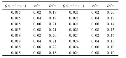 表3中,當來流流量較小時(Q=0.015m3/s),回流區(qū)的長度D隨著浮體結構位置的增大逐漸增大;當來流流量較大時(Q=0.024m3/s),回流區(qū)的長度卻隨著浮體結構位置的增大呈現(xiàn)減小的趨勢。試驗過程中,當浮體結構位置較高且來流較小時,浮體結構上下部區(qū)域的主流流速較小,回流區(qū)范圍較大;浮體結構位置不變時,來流流量增大,回流區(qū)長度減小。來流增加,下泄水流流速較大,并迅速將回流區(qū)內的水流帶入下游區(qū)域,因此回流區(qū)長度反而呈現(xiàn)減小趨勢。