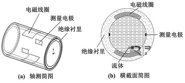 ②電容式非滿(mǎn)管工業(yè)污水流量計(jì)。電容式非滿(mǎn)管工業(yè)污水流量計(jì)結(jié)構(gòu)簡(jiǎn)圖如圖4所示。