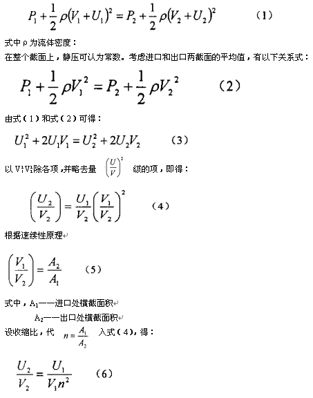 設(shè)整流器進口處壓力為P1,平均流速為V1,某點上的速度不均勻度為U1,出口處壓力為P2,平均流速為V2,通過進口處某點同**線,在出口處的速度不均勻度為U2,沿該流線,由伯努利方程得: