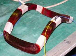由此可見,硝酸流量表正常運(yùn)行需要有穩(wěn)定的磁場,而磁場正是靠傳感器線圈內(nèi)的 勵磁電流來產(chǎn)生的。勵磁線圈如圖2所示。
