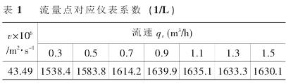 實驗測得在流體介質(zhì)的粘度為43.49cSt條件下,DN10口徑的渦輪流量傳感器在各個實驗流量點的儀表系數(shù)Ki如表1所示。