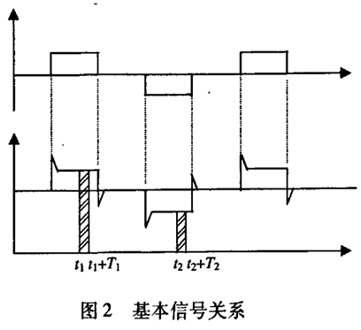 智能濃硫酸電磁流量計一般都采用工頻交流電源供電,其電源電壓的幅值和頻率的變化都會給智能濃硫酸電磁流量計帶來電源性干擾噪聲。對電源電壓的幅值變化,因采用多級集成穩(wěn)壓,一般而言電源電壓的幅值變化對電磁流量的測量精度影響不大。當(dāng)電源電壓的頻率波動時,雖然其波動范圍有限,但對智能濃硫酸電磁流量計測量精度影響較大。為了解決工頻干擾問題,實現(xiàn)對流體流速感應(yīng)電勢e柚信號的準(zhǔn)確測量,需利用以下基本關(guān)系:①勵磁周期為工頻周期的整數(shù)倍,即勵磁頻率為50/nHz(n為偶數(shù));②正負(fù)勵磁下的同相位采樣。圖2是對應(yīng)低頻矩形波勵磁形式下的典型電勢信號形式,按上述關(guān)系在一個勵磁周期下,若假設(shè)t。和t:點為工頻干擾的等效干擾點,且采樣寬度T=T1=T2,則e –ab的基本算式為:,