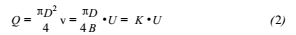 式(1)說(shuō)明,導(dǎo)體在磁場(chǎng)內(nèi)作切割磁力線運(yùn)動(dòng),導(dǎo)體兩端產(chǎn)生的感應(yīng)電動(dòng)勢(shì)的大小與磁感應(yīng)強(qiáng)度B成正比,與導(dǎo)體的長(zhǎng)度D成正比,與導(dǎo)體運(yùn)動(dòng)的速度v成正比。由式(2)可知液體的體積流量與感應(yīng)電動(dòng)勢(shì)成正比,這就是尿酸流量計(jì)的設(shè)計(jì)原理。