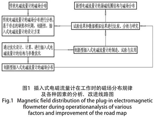 煤層注水流量計(jì)因其特殊的結(jié)構(gòu)形式,致使其抗干擾能力較弱、準(zhǔn)確度偏低以及瞬時(shí)流量波動(dòng)過(guò)大等不良現(xiàn)象,但便于安裝、造價(jià)低廉、普遍應(yīng)用于大管道等特點(diǎn)而存在。為了發(fā)揮其優(yōu)勢(shì),消除其不利因素,對(duì)其內(nèi)部結(jié)構(gòu)及其相關(guān)技術(shù)參數(shù)進(jìn)行優(yōu)化設(shè)計(jì),從而使其準(zhǔn)確度能夠達(dá)到 ±1% FS,使抗干擾能力得到極大地增強(qiáng)。本文主要通過(guò)優(yōu)化設(shè)計(jì)、選擇材料和試驗(yàn),使煤層注水流量計(jì)的穩(wěn)定性和準(zhǔn)確度大幅度提高,并提出解決措施,對(duì)實(shí)際應(yīng)用具有參考價(jià)值。分析與研究程序圖如圖 1 所示。