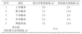 由表1可知,單臺機組運行所需總油量約為37.6m3,其中各軸承所需油量約為24m3,均超出設計計算總油量。機組運行所需總油量超出一個運行油桶的總容積,至少需用2個油桶來盛放。為保證機組各軸承用油和調速系統(tǒng)用油的油品質量,機組排油時將各軸承所用透平油(約為24m3)排至一個運行油桶中,將調速系統(tǒng)所用透平油(約為13.6m3)排至另一個運行油桶中,避免混合造成油質化驗指標不滿足用油設備的要求。