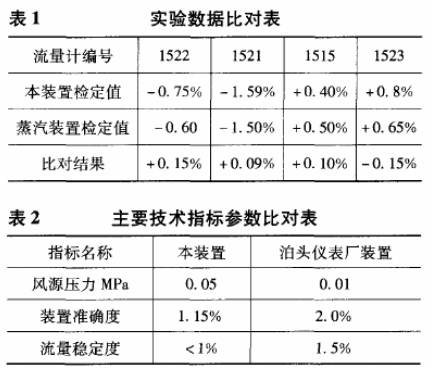 1)對同一臺蒸汽流量計在該裝置上的檢定結(jié)果與蒸汽流量檢定裝置上鑒定結(jié)果的比對如表1所示。該裝置準(zhǔn)確度為1.25%。表1所列數(shù)據(jù)為誤差*大值。