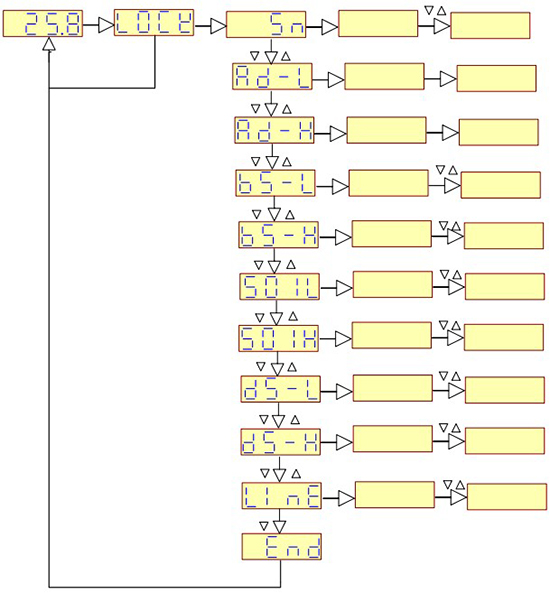菜單 SO1L 和 SO1H 為變送器輸出 4m A 和 20m A 電流標(biāo)定菜單,此菜單顯示為十進(jìn)制, 按位選鍵和增加鍵修改數(shù)據(jù),此時變送器會輸出當(dāng)前數(shù)值的電流值,連接電流表,將電流標(biāo)定準(zhǔn)確即可。