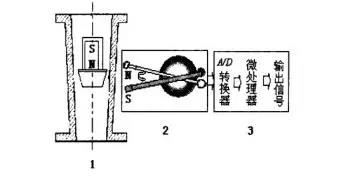 從以上原理分析可知,浮子的高度檢測是通過機電轉(zhuǎn)換單元精確測量懸浮在錐形管中的位置,通常通過磁鋼耦合,帶動機械擺桿轉(zhuǎn)動,使角位移傳感器角度發(fā)生變化,輸出電信號,通過對信號進行處理,進而換算處實際流量。浮子位置隨流量變化頻繁運動,可見該機電轉(zhuǎn)換單元必須非接觸式的,機械磨損小,工作可靠穩(wěn)定,溫度特性好,線性度較高的才能保證輸出的精度。所以傳感器性能的提高意味著金屬管浮子流量計精度的提高。工況條件放寬,使浮子流量計能在更廣泛的工作環(huán)境中得到應用。所以本文將對如何提高角度位移測量精度和環(huán)境適應性進行研究,如何提高測量的精度?