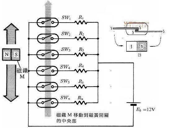 磁變送器(干簧管變送器):與磁開關(guān)的原理相似,它是捆綁在浮筒外面。當浮筒里面的浮子隨著液位變化時,上下移動,浮子中的磁鋼所在的位置將改變干簧管中磁開關(guān)的狀態(tài)(閉合),只有在磁鋼作用范圍內(nèi)的干簧管閉合,其它都處于開路狀態(tài),從而改變回路的電阻值,或者說是改變了輸出回路的阻值。浮子的位置相當與電位器的滑動點,隨著浮子的位置變化,引起上下電阻的抽頭(上下電阻值)變化,液位越低,電阻值越大,越高電阻越?。ǔ鼍€在頂部)。由于回路是恒(定電)流,再通過電流/電壓轉(zhuǎn)換,進而可以轉(zhuǎn)化為4~20mA/HART 等信號。液位變化,液位旁邊的磁開關(guān)閉合,電阻值變化,輸出電壓隨之變化。