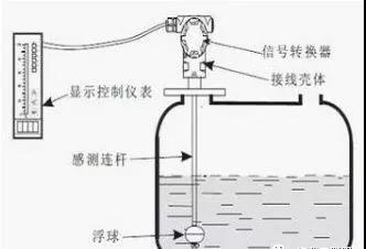 原理: 浮球液位計結構主要基于浮力和靜磁場原理設計生產(chǎn)的。帶有磁體的浮球(簡稱浮球)在被測介質(zhì)中的位置受浮力作用影響:液位的變化導致磁性浮子位置的變化。浮球中的磁體和傳感器(磁簧開關)作用,使串連入電路的元件(如定值電阻)的數(shù)量發(fā)生變化,進而使儀表電路系統(tǒng)的電學量發(fā)生改變。也就是使磁性浮子位置的變化引起電學量的變化。通過檢測電學量的變化來反映容器內(nèi)液位的情況。