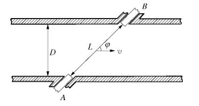 制藥廠污水流量計(jì)為獨(dú)立測(cè)量設(shè)備,由多個(gè)位于管線(xiàn)內(nèi)壁的超聲傳感器組成。傳感器由緊固機(jī)械裝置插入管道中,超聲脈沖被 2 個(gè)傳感器交替地發(fā)射和接收。由于電磁在逆流和順流情況下的傳輸時(shí)間 tu 和 t d 不同,通過(guò)時(shí)差法可以計(jì)算得到流體流速,工作原理如圖 1 所示。制藥廠污水流量計(jì)還可以配置成雙向計(jì)量模式,精度不變。