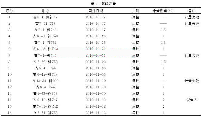 通過(guò)現(xiàn)場(chǎng)多口井試驗(yàn),試驗(yàn)井如表1所示。污水流量計(jì)可以較為準(zhǔn)確地計(jì)量水泥車(chē)上水總量,防止替空、留水泥塞事故的發(fā)生。